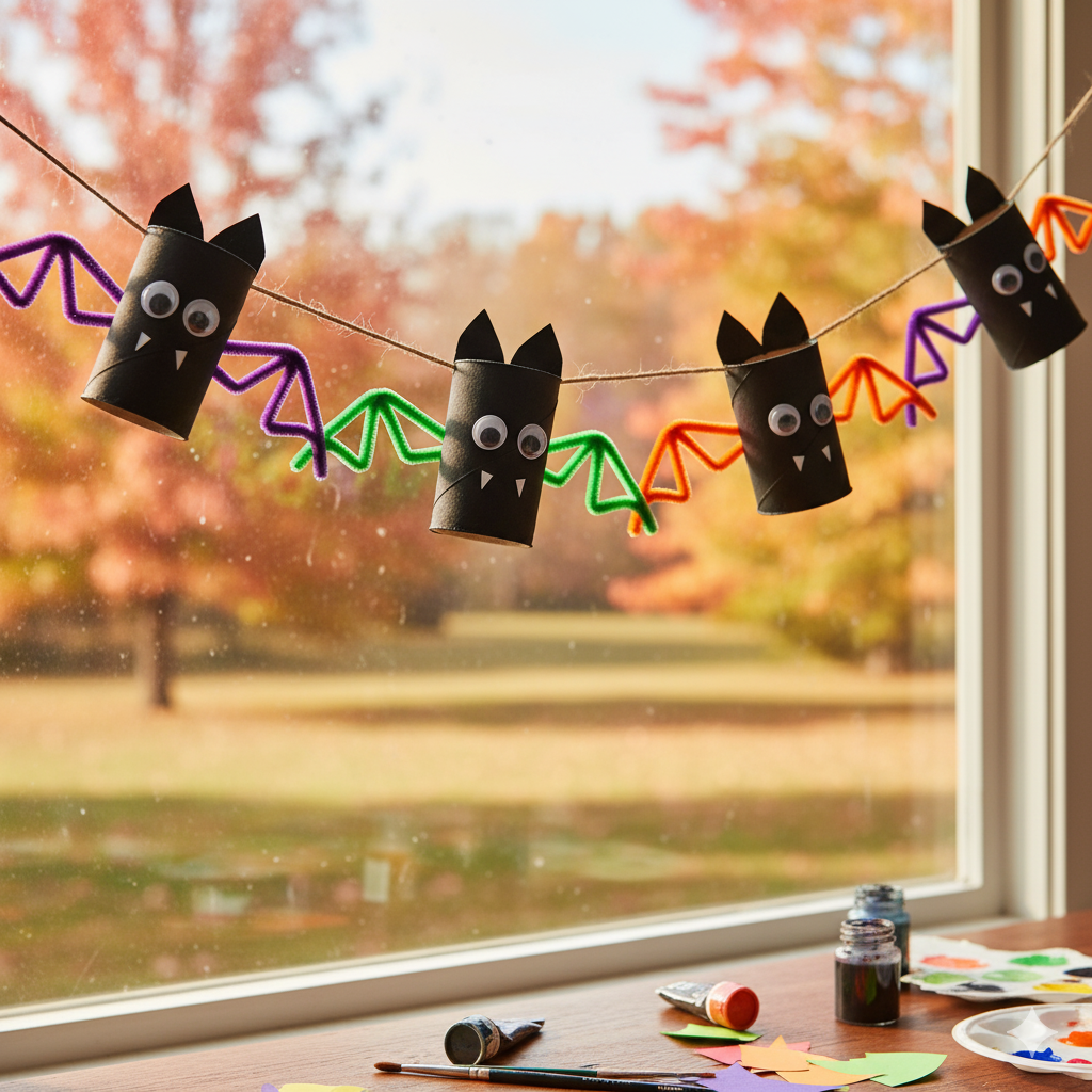 - Izziv: Netopirje obesite na vrvico in jih uporabite kot girlando za okno.